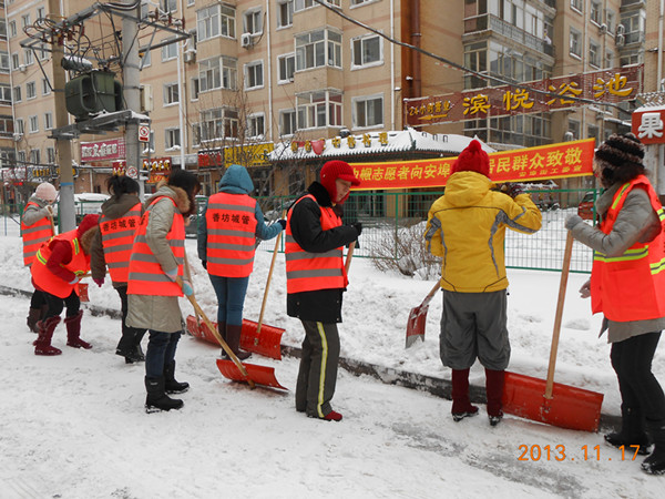 11月16日,哈尔滨市迎来50年一遇的暴雪,给人们的出行带来了极大的困难。香坊区安埠街道妇联以雪为令,积极参与迎战冰雪,投入到全民动员清冰雪行动中,对辖区内的冰雪进行了及时的清理,保障了辖区百姓的安全出行。