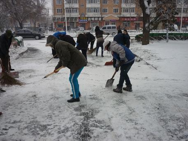 -平房区妇联组织巾帼志愿者展开清冰雪行动