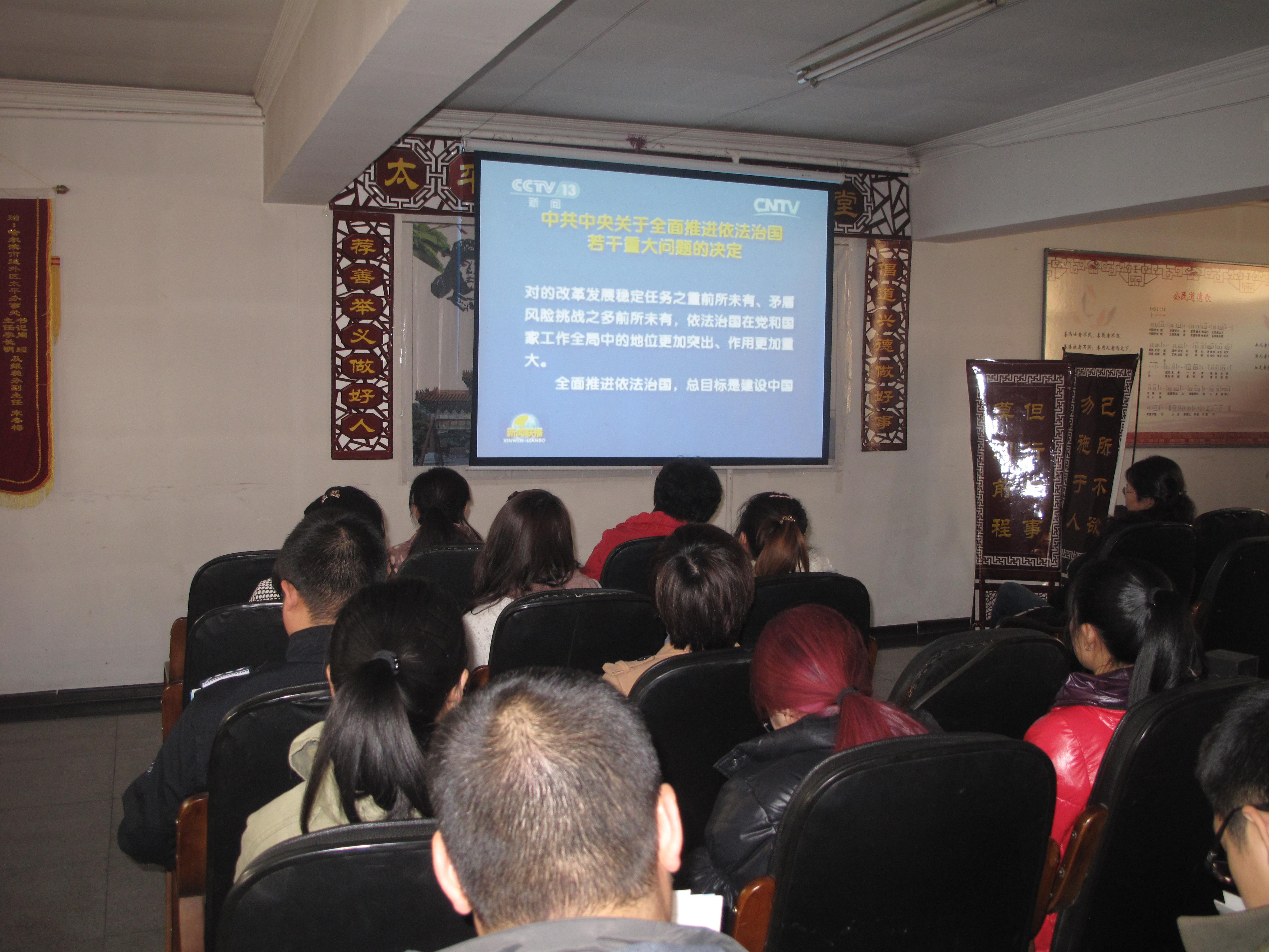 在学习交流会上,播放了全会审议通过《中共中央关于全面推进依法治国若干重大问题的决定》视频资料,机关女干部就依法治国等国家重大问题发表了自己的看法,并结合基层实际进行了讨论和建议。大家认为:要以党的十八届四中全会召开为契机,深刻践行社会主义核心价值观,充分利用微博、微信、论坛等网络新媒体,深入宣传好四中全会的重大意义,积极引导辖区广大妇女学习贯彻四中全会精神,加强妇女学法、守法、用法的普法教育。