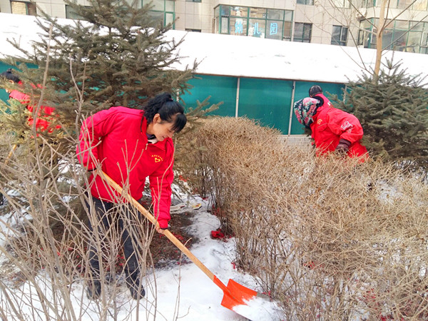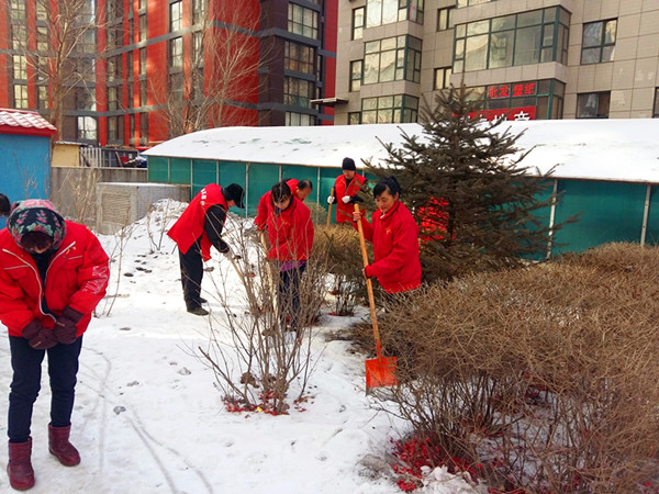 活动中,巾帼志愿者们身着志愿者服装,佩戴志愿者标志,手持工具,三人一组,五人一队,在冬奥村庭院花圃中劳作。有的人负责夹取垃圾,有的人负责清扫杂物,有的人负责倾倒垃圾,忙得热火朝天。虽然严冬已过,春已渐暖,寒风仍在,冰雪未化,但是我们一起享受到劳动带来的快乐,一起为美化城市环境尽一点绵薄之力。此次活动也受到了很多居民的赞赏,他们都表示爱护自然,保护环境是每个公民应尽的义务,应该大力弘扬环保理念,并尽力为美化环境出一份力。