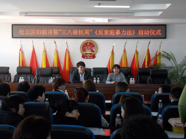 2016年是“三八”国际劳动妇女节106周年,也是我国首部《中华人民共和国反家庭暴力法》实施之年。为全面贯彻落实习近平总书记关于深入推进平安中国建设的重要指示,大力宣传反家暴法、深化妇女法制宣传教育、强化妇女维权服务。3月13日上午,松北区“三八维权周”《反家庭暴力法》启动仪式在松浦镇五楼会议室举行。区妇联妇儿办负责人苗雪杰、镇党委副书记马学龙、镇妇联主席贺雅贤以及各村(社区)妇联主席及群众等八十余人参加了启动仪式。