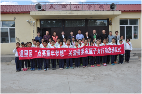 5月31日,区委副书记翁长江,团区委书记、区青联主席夏天同部分青联副主席、委员、社会爱心人士来到道里区五四小学举行了道里区“点亮童年梦想”关爱贫困家庭子女行动启动仪式,并将孩子们期盼已久的所有温馨类礼物在“六一”前送到了各个学校。在青联委员、社会爱心人士的帮助下此次活动共计筹集款物合计5万多元,帮助295名孩子实现上龙塔、游太阳岛、参极地馆等欢乐出游的梦想,帮助1275名孩子实现有一个自己的足球、篮球、课外书、模型玩具等温馨礼物的梦想,帮助286名孩子实现看电影、美术展看画展等参与趣味活动的梦想,帮助78名孩子实现过一天大学生活的快乐体验的梦想。
