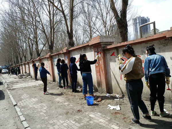 大家自备水桶、刷子等工具重点对乱贴乱画进行清理,女干部们三五成群互相配合,先用清水浸湿,再用刷子等工具清理,经过两天的努力,社区墙体焕然一新,美化了幸福镇的环境,为创建文明城市贡献出了一份力量。